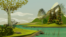 Een 3-dimensionale ode aan Bob Ross. Het zomer-, herfst- en winterlandschap zijn in de maak.